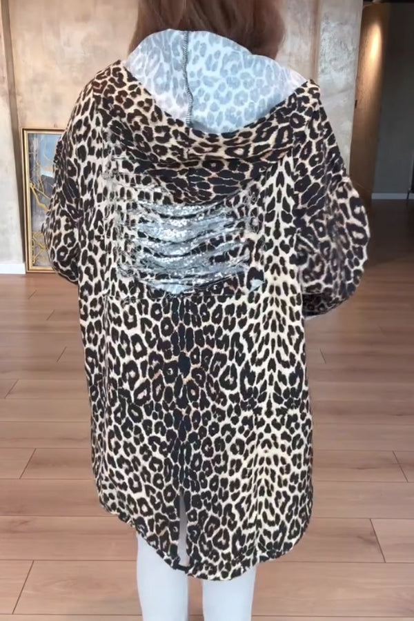 Women Casual Hooded Drawstring Waterproof Jacket with Shredded Back