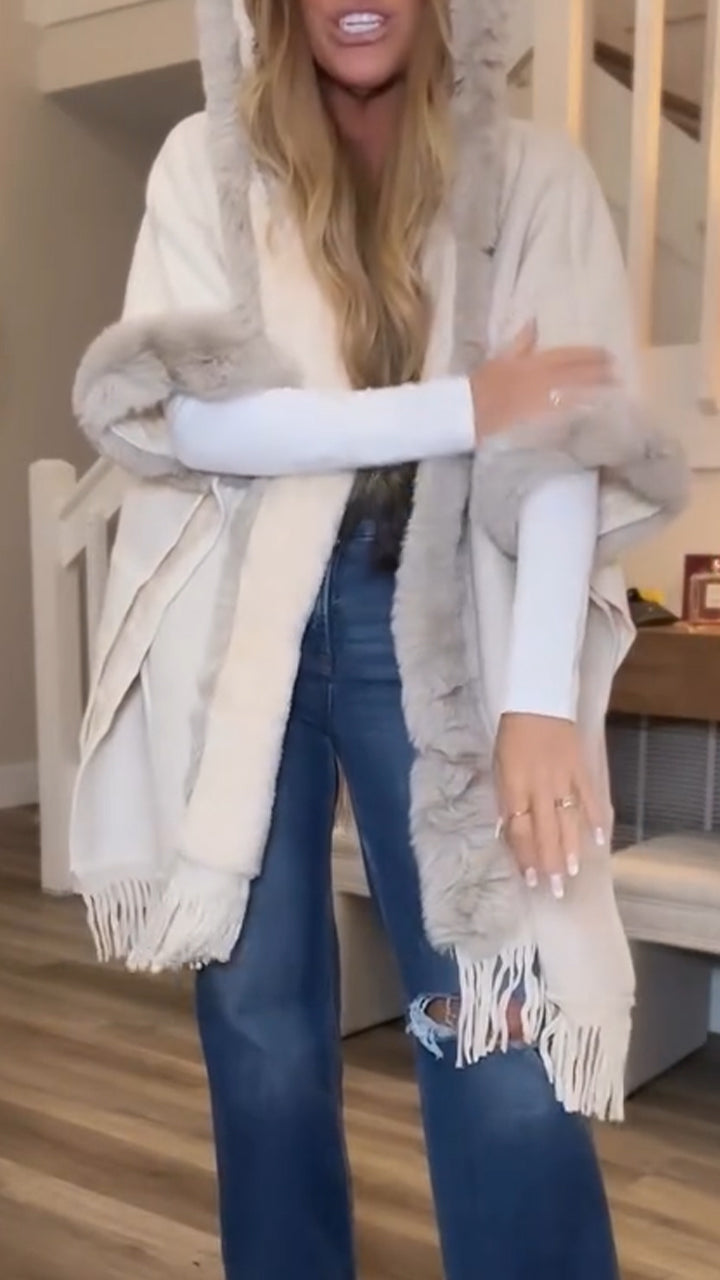 Women Fur Collar Hooded Tassel Casual Coat