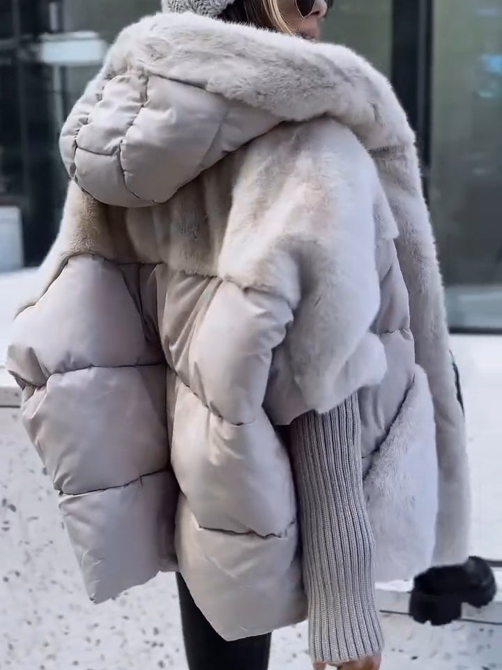 Women Plush Hooded Vertical Stripe Printed Casual Coat