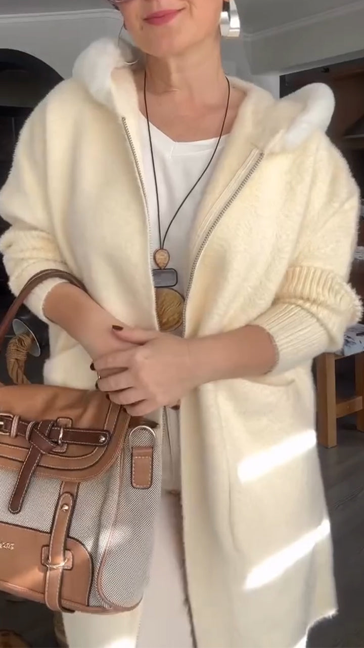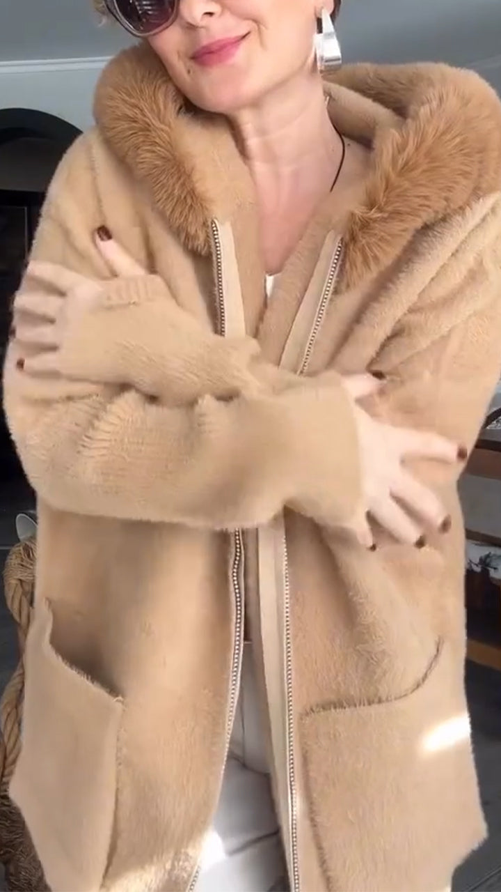 Women Fur Collar Patchwork Knitted Sleeves Casual Coat