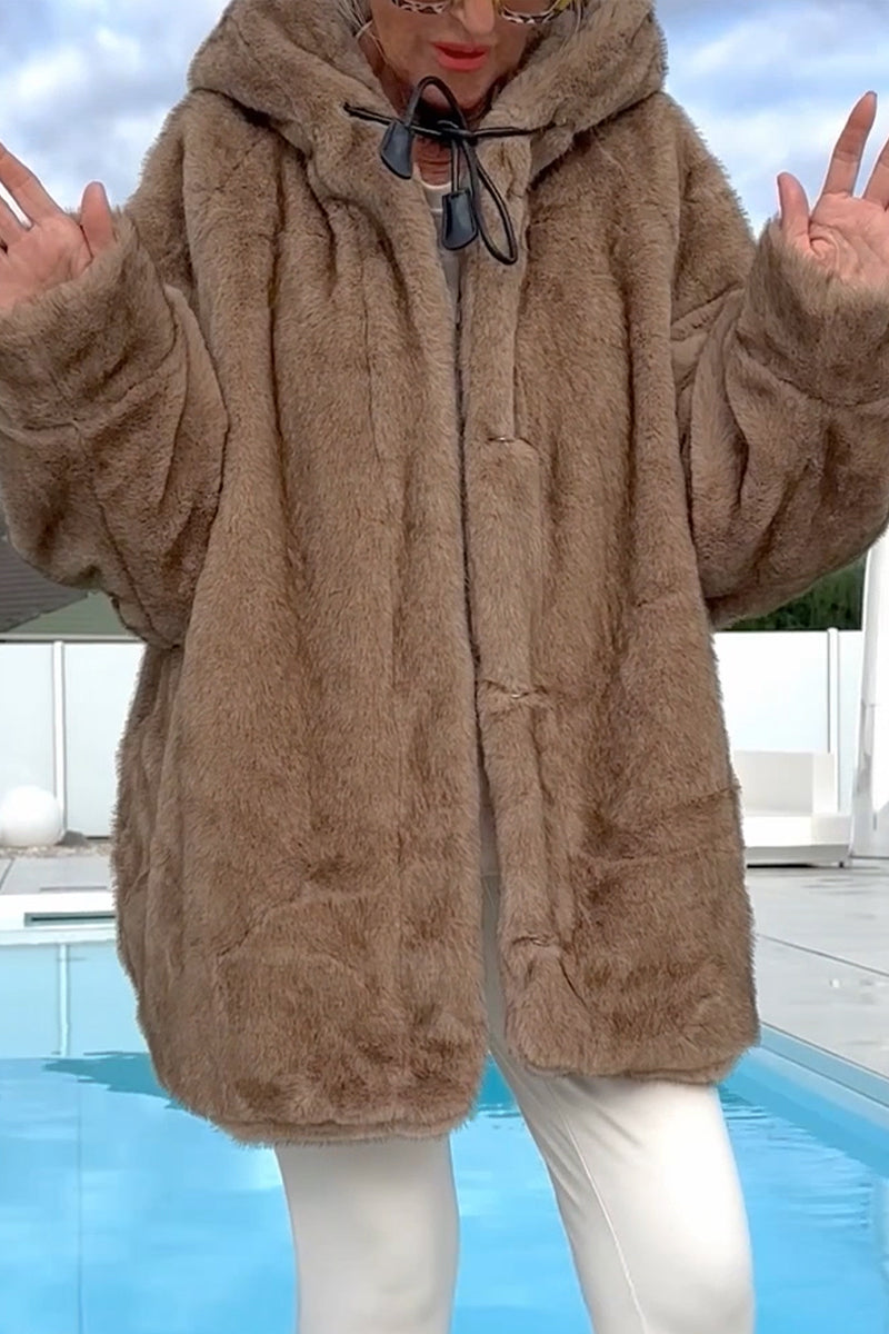 Women Party Plush Large Lapel Leopard Print Sequined Tassel Warm Coat