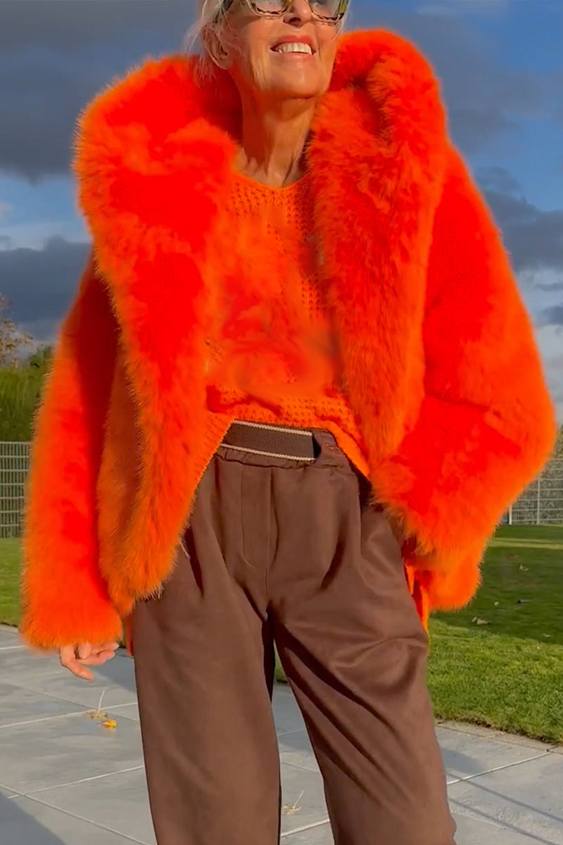 Women Party Plush Large Lapel Leopard Print Sequined Tassel Warm Coat