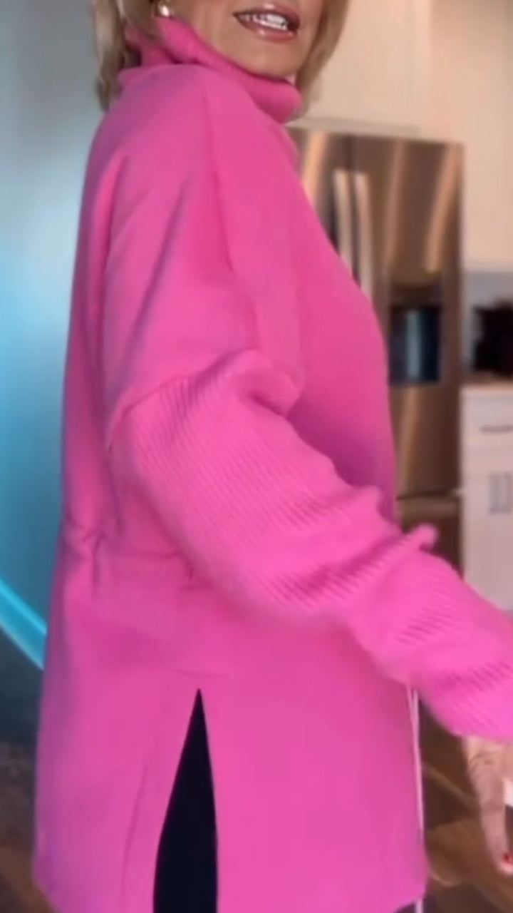 Women Hooded Drawstring Plaid Sleeve Zipper Design Casual Long Coat