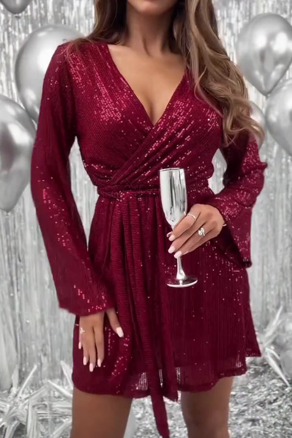 Women Elegant Holiday Party Sequin Tie Dress
