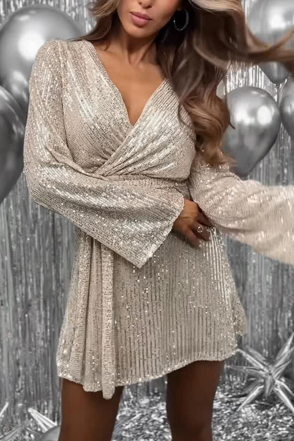 Women Deep V-neck Sequin Elegant Temperament Dress