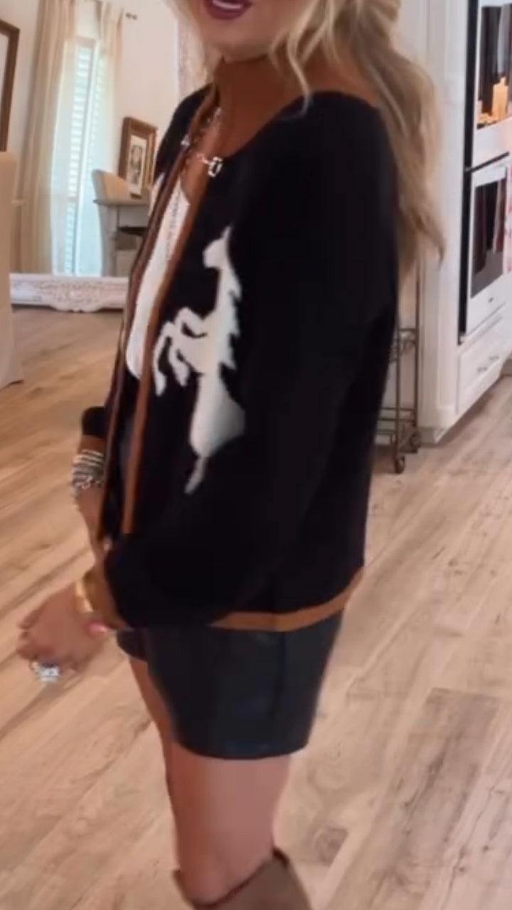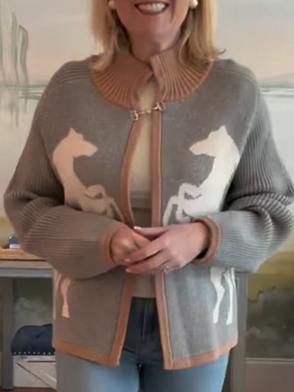 Ladies Patchwork Printed Casual Knitted Cardigan