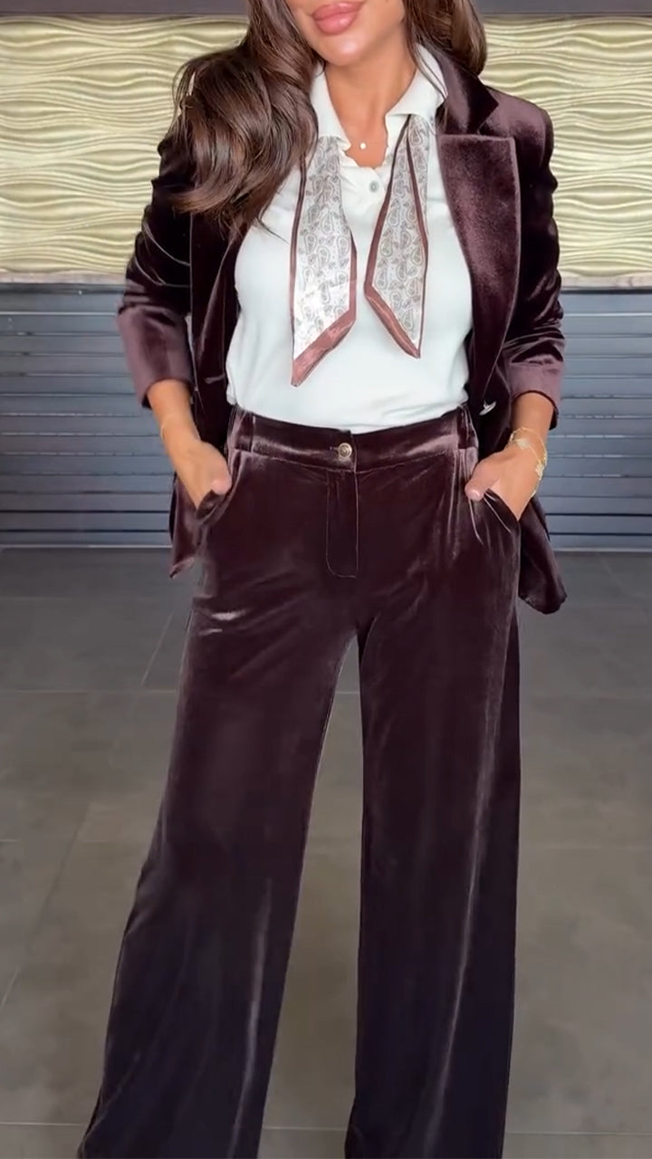 Women Round Neck Hot Diamond Flash Solid Color Casual Suit