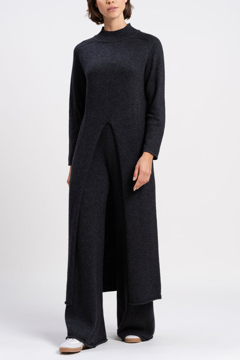 Women Round Neck Irregular Long Top+ Pants Solid Color Casual Knitted Suit