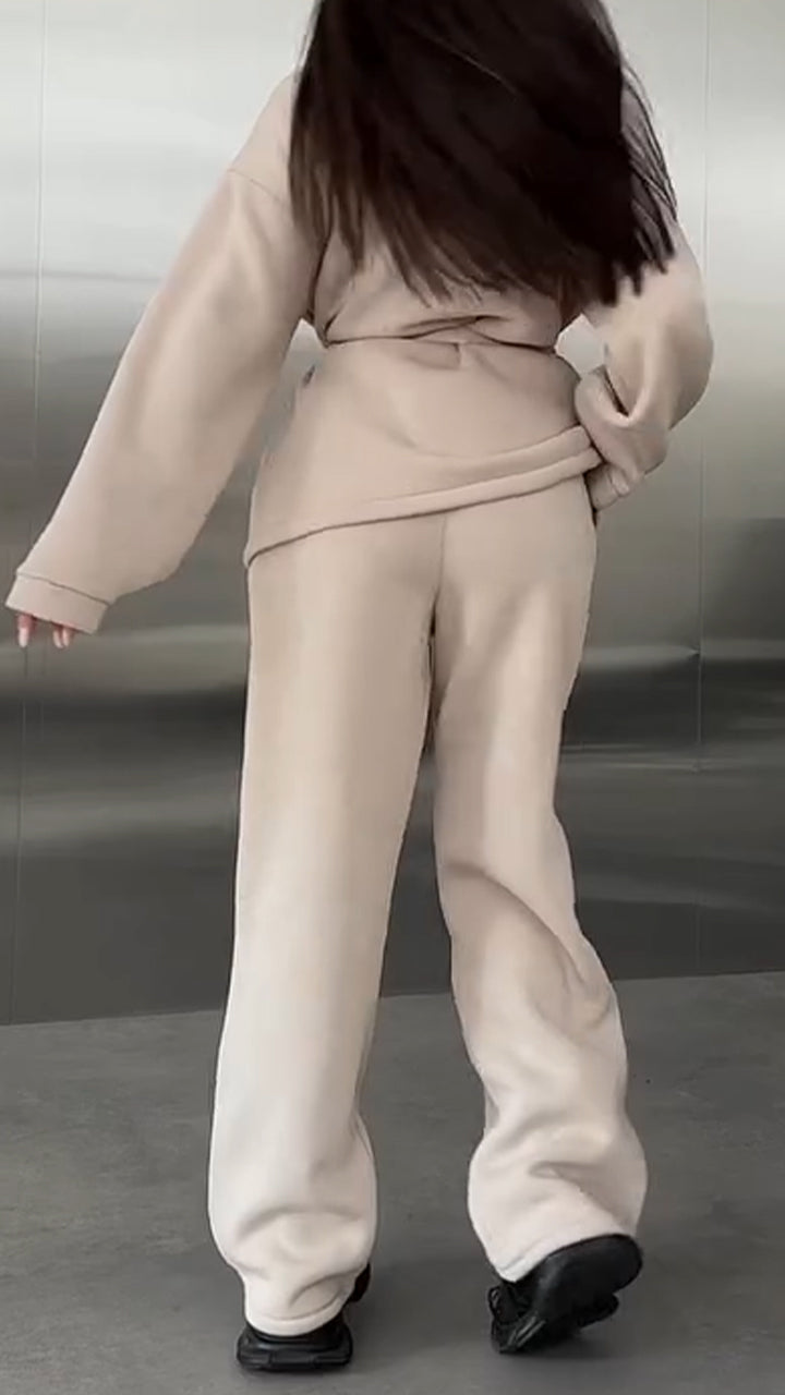 Women Turtleneck Top + Pants Solid Color Casual Suit