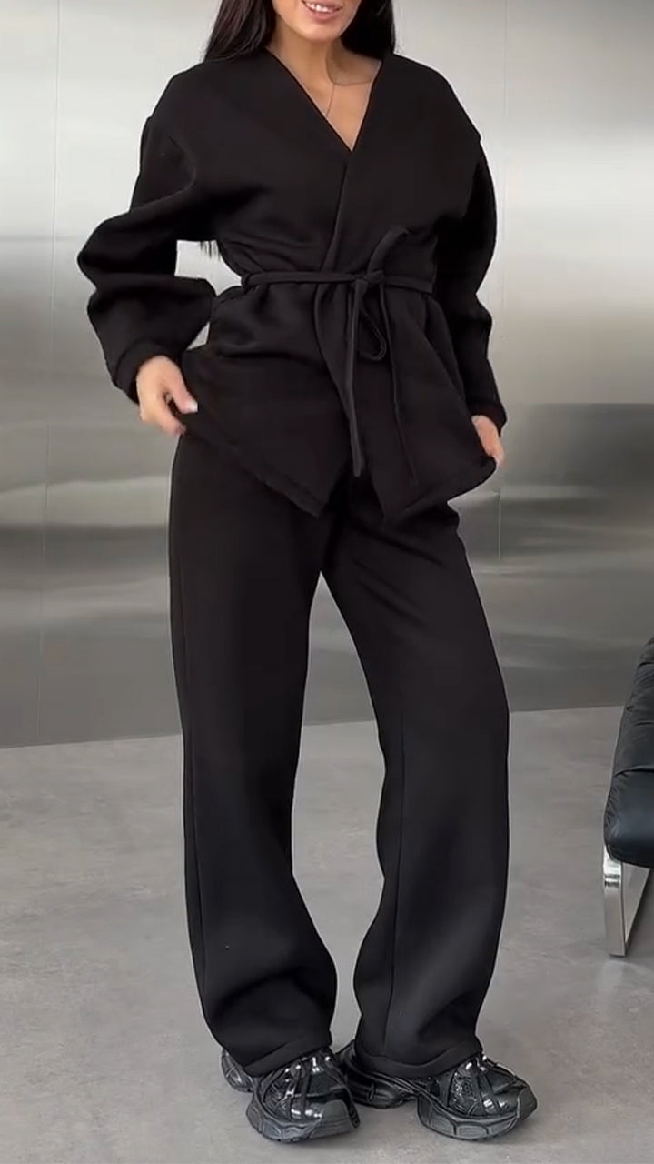 Women Round Neck Spliced sequin Sleeve Top + Pants Casual Suit