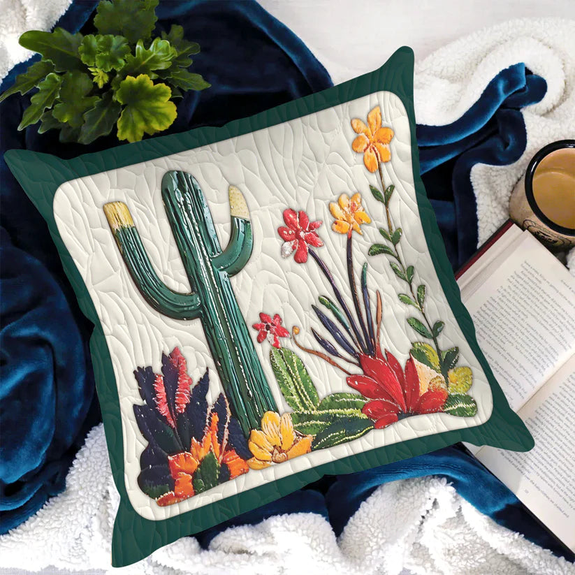 Southwestern Cactus & Floral Quilted Pillow