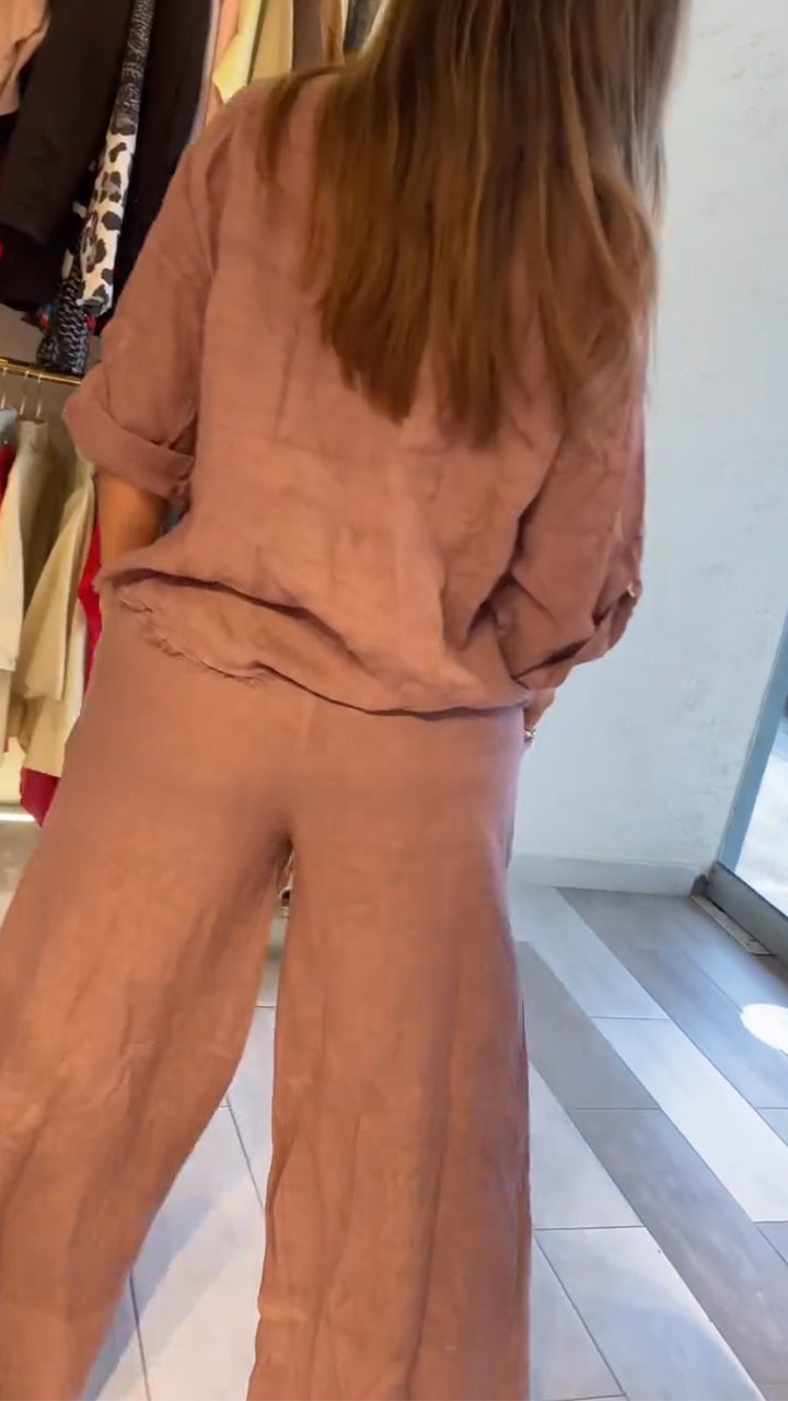 Ladies Round Neck Printed Top and Pants Casual Set