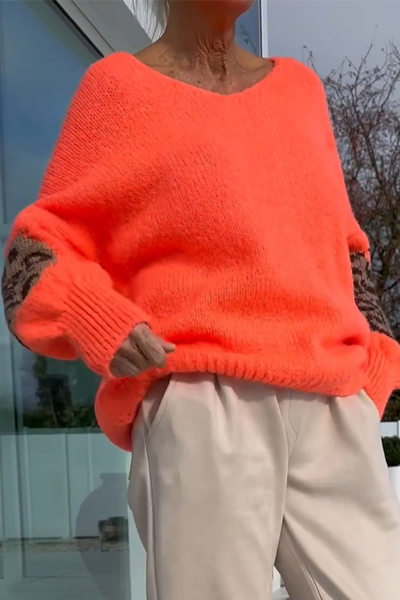 Ladies Round Neck Sleeve Printed Casual Sweater