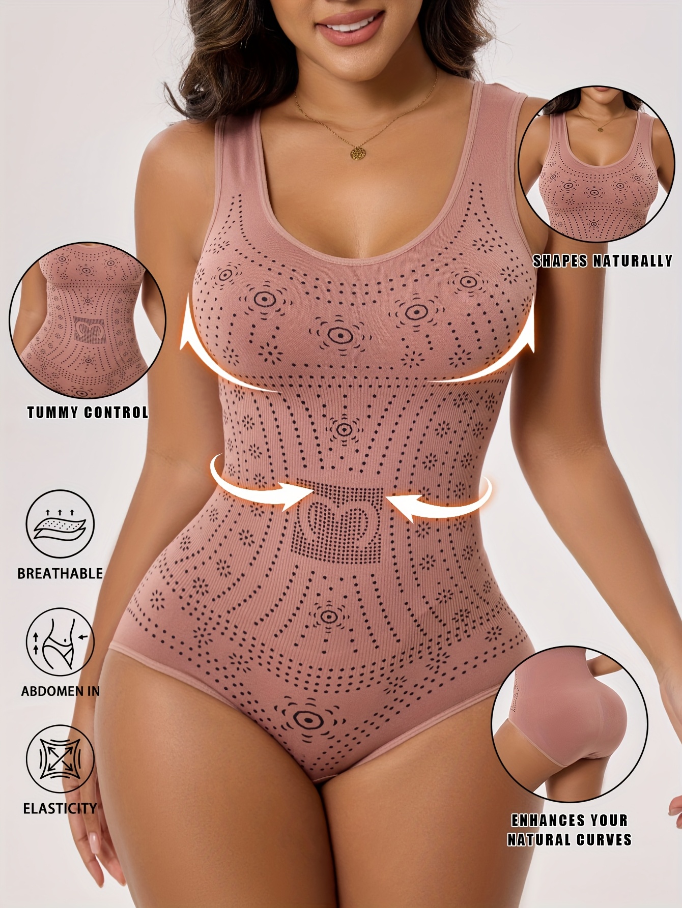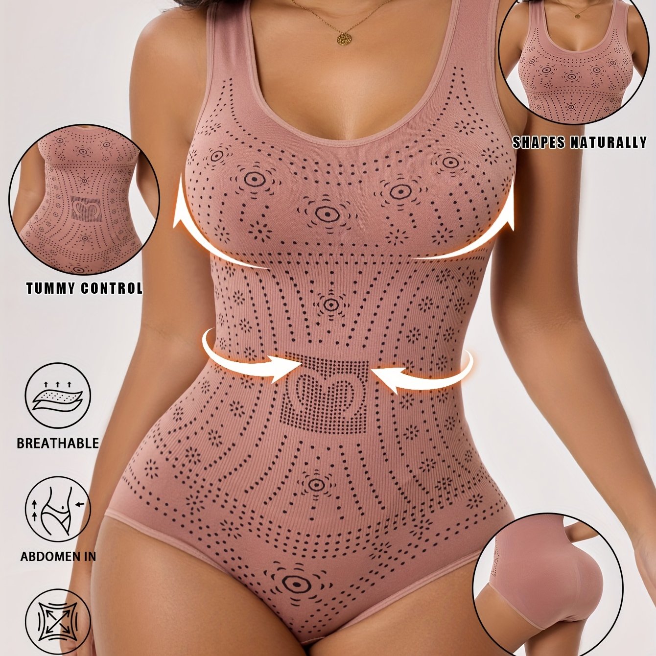 Features shaping for both the bust and abdominal areas. offering support and a streamlined silhouette in a solid color design.