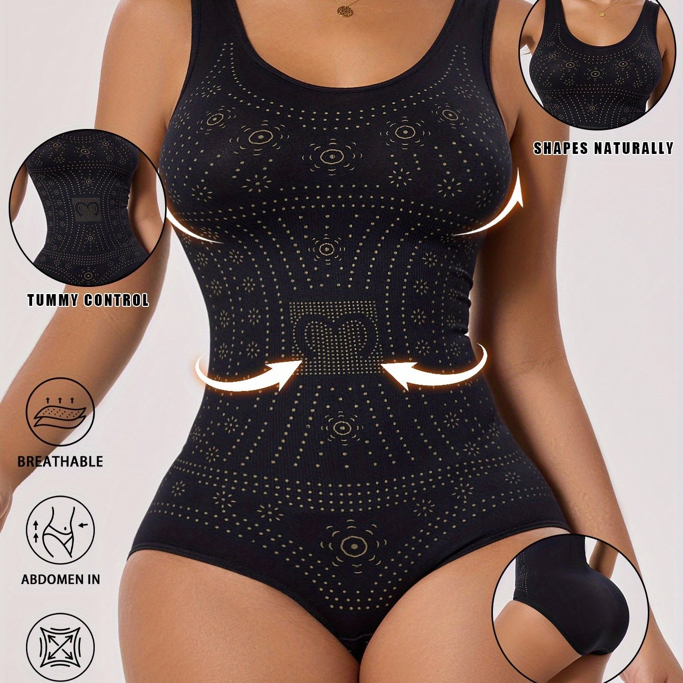 This bodysuit provides full-coverage tummy control with compression for abdominal shaping. made from a knit fabric of 85% Polyamide and 15% Elastane.