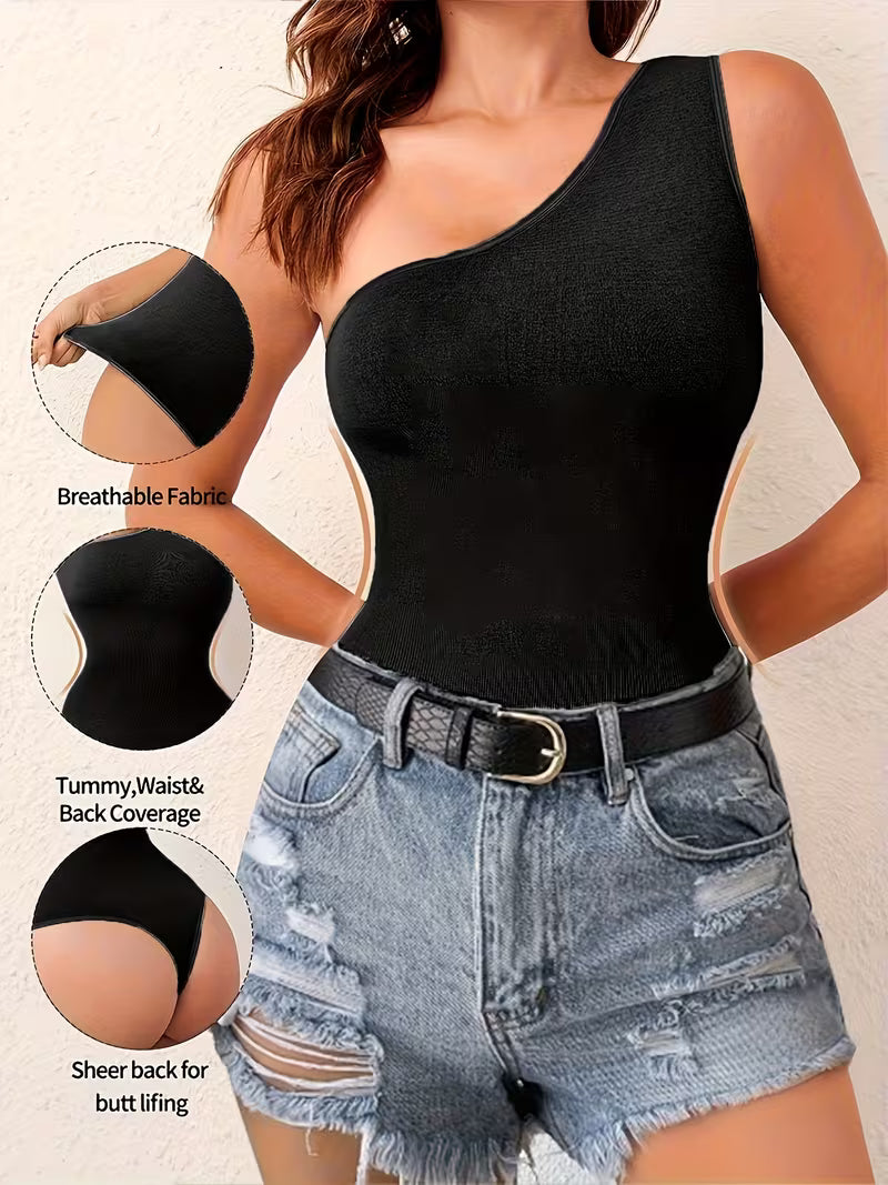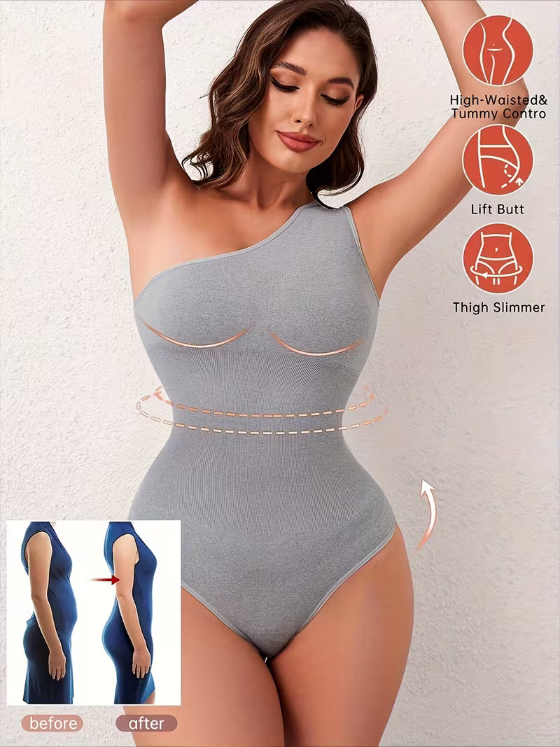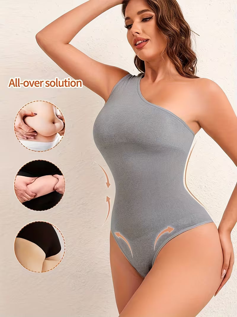 Women One-Shoulder Shapewear Bodysuit - Tummy Control Thong with Waist